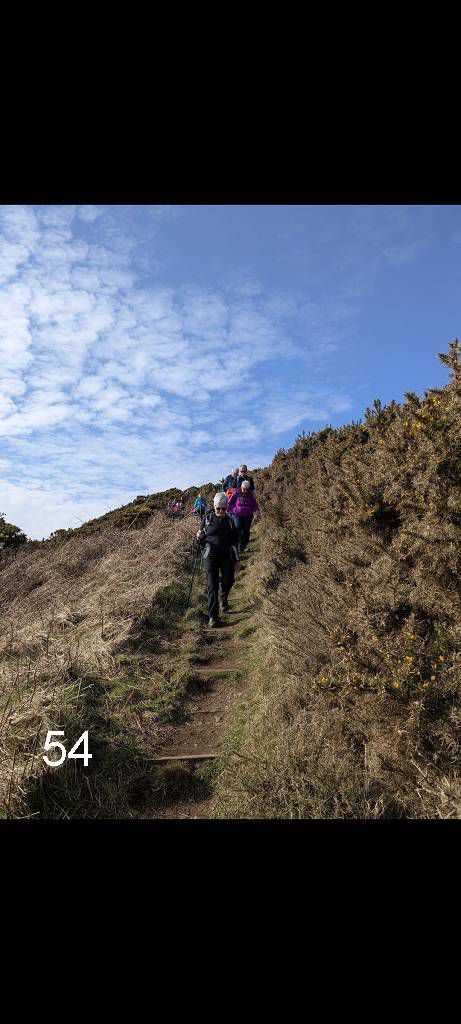 Both groups followed a common track shortly after that, crossing over Maddy Moss, skirting around the base of Andrew Gannel hill and taking the high track to reach the knee-jarring steps down to Tilliecoultry. Those daring to take their eyes off the steep track for a few seconds were treated to spectacular views across the Forth valley.