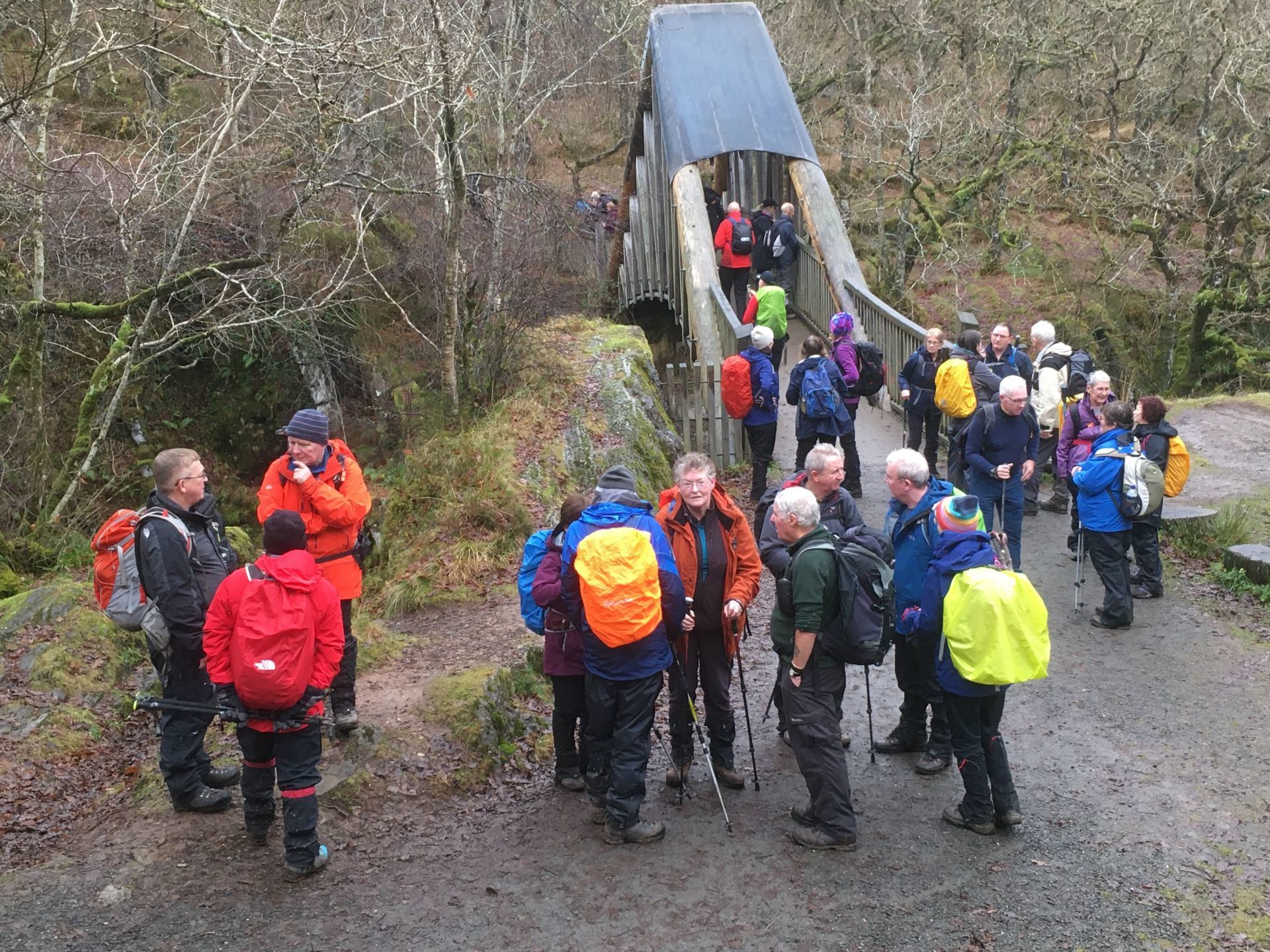 The day started off with the hikers' coach getting thoroughly stuck in the rain-saturated car park just off the A 823 in Glen Devon. However the unfortunate occurrence didn't hinder the hikers setting off in two groups to meander in a south-westerly direction through the hills to Tillicoultry.